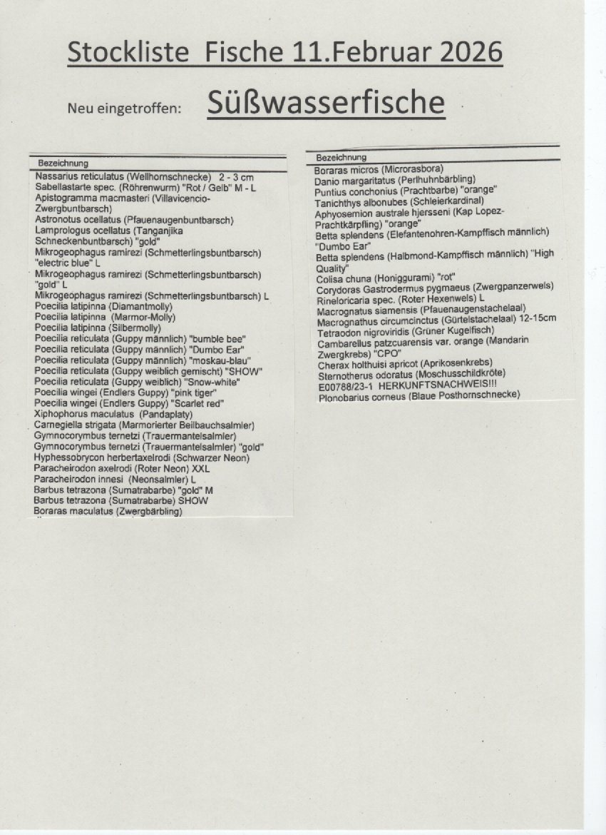 Stockliste Süsswasser 23.1.2026
